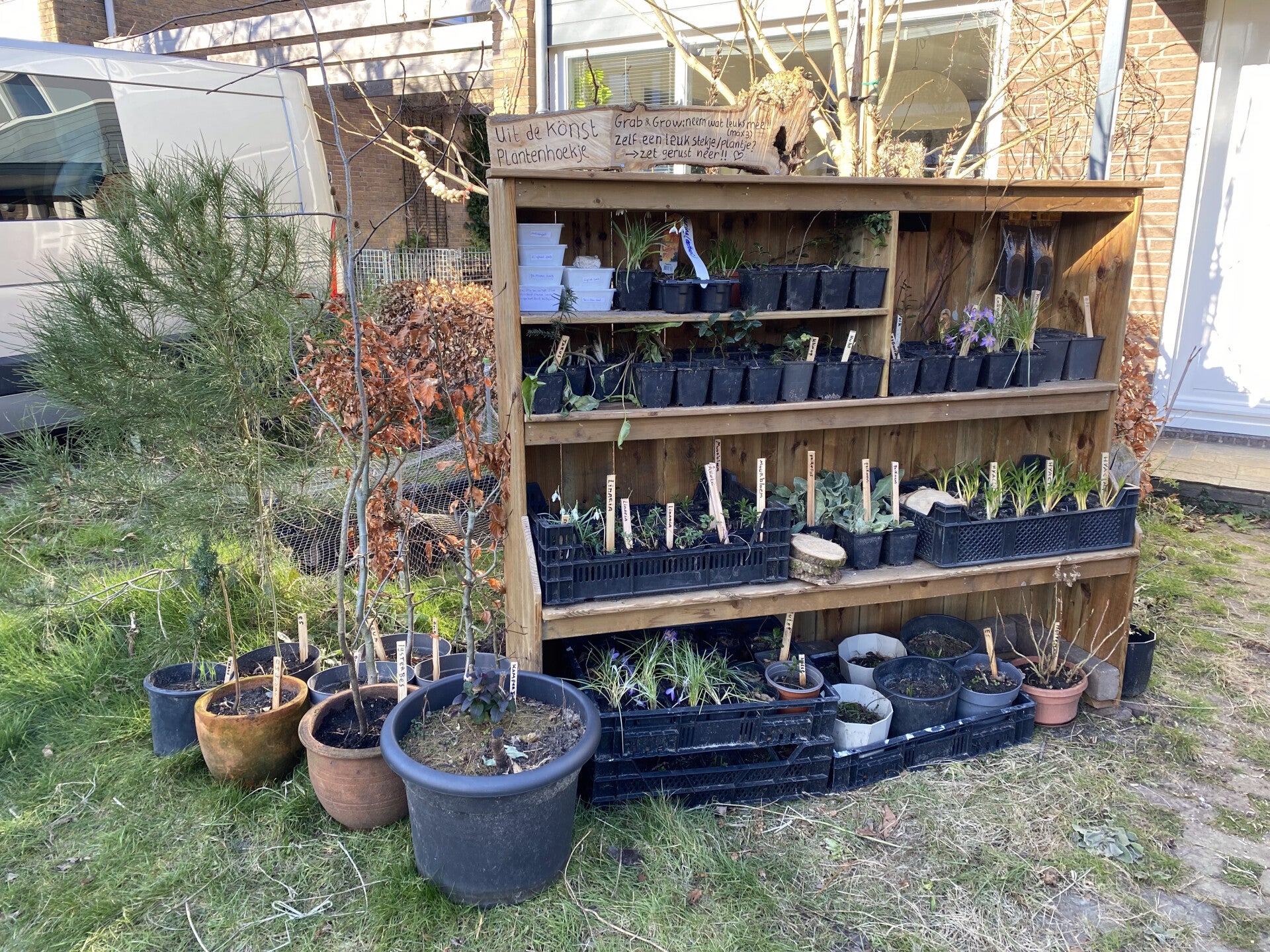In maart 2025 is de Plantenweggeefkast bij ons voor de deur gestart. Het idee ontstond uit de overvloed aan planten die ik als 'bijvangst' uit tuinen moet of mag verwijderen of stekken. Het is zonde om deze weg te gooien, daarom krijgt elke plant bij ons een tweede kans om iemand anders blij te maken en de lokale biodiversiteit te versterken.